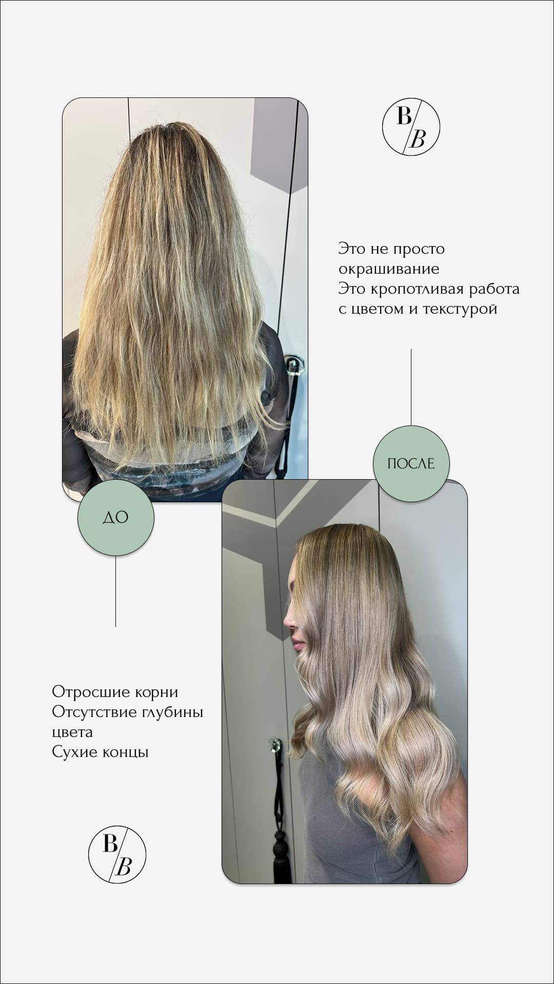 Мы не стремимся быть "салоном для всех". Мы хотим быть твоим салоном. Местом, куда ты возвращаешься не только за красивыми волосами, но и за состоянием покоя и уверенности в себе.
