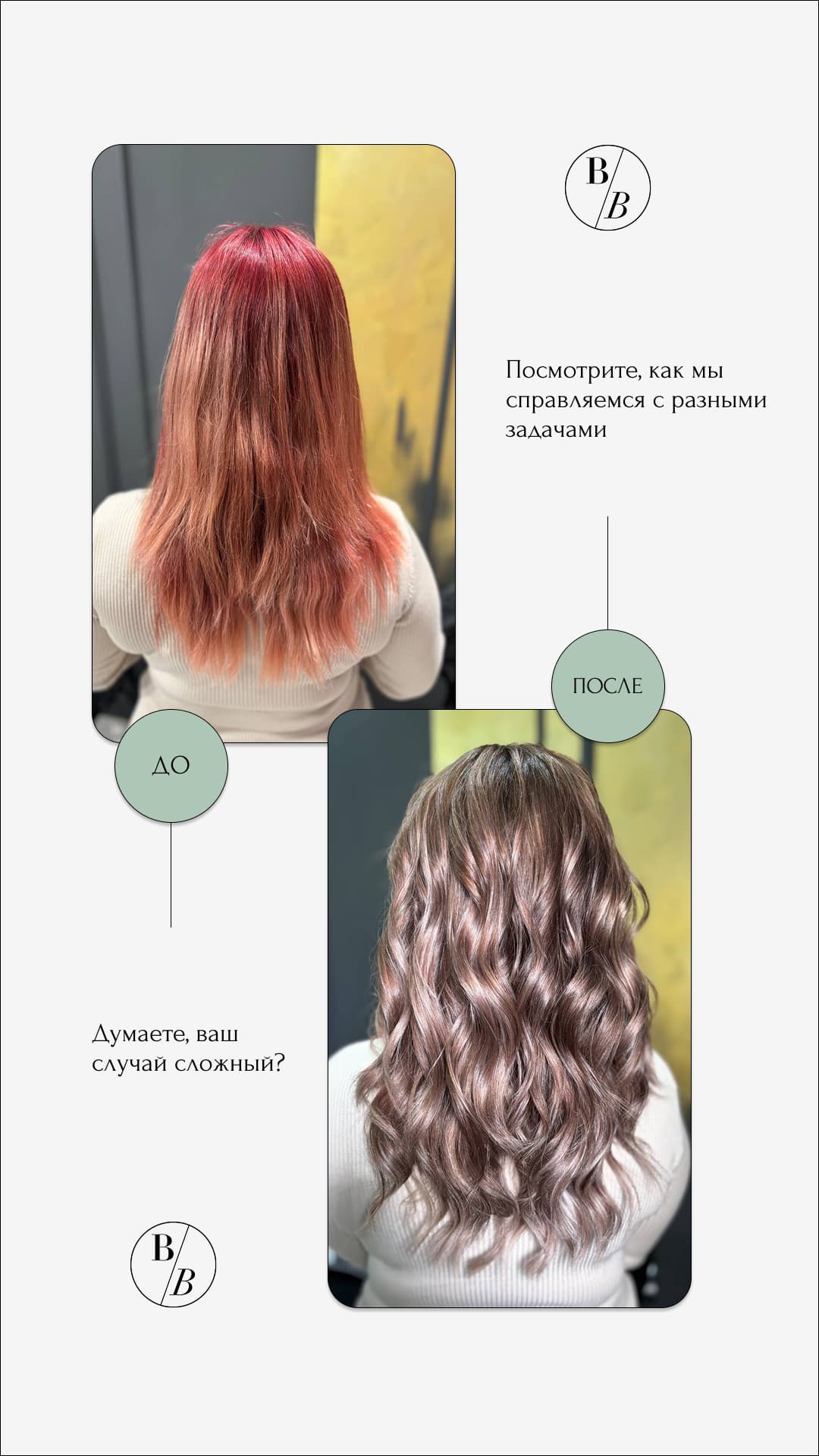 Наш подход — это честный диалог у зеркала и индивидуальный подбор техники под твой тип внешности и ритм жизни. Мы не просто делаем модные стрижки и сложное окрашивание (Airtouch, балаяж, блонд) - мы создаем образы, которые подчеркивают вашу индивидуальность и сохраняют здоровье волос. С нами сотрудничают лучшие мастера-колористы и за 7 лет ежедневной работы мы научились находить подход к любым волосам и гарантировать результат, которому можно доверять.